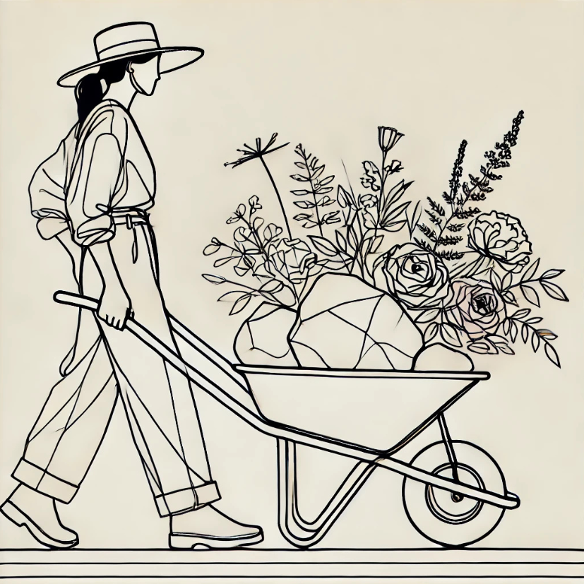 Now she knows that the rocks don’t need to be carried, that the wheelbarrow can be filled with anything – rocks, beautiful flowers or something else.